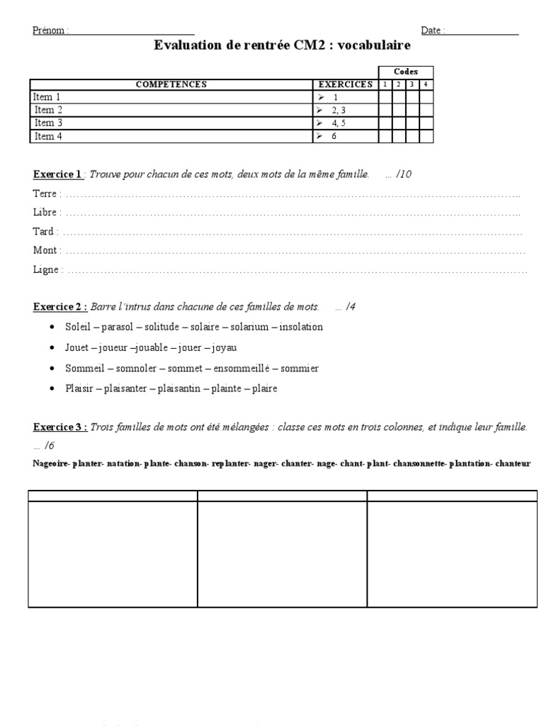 Familles De Mots Cm2 Cycle 3 Exercice Evaluation Revision Lecon Pass Education