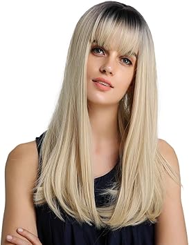 Haircube Mode 20 Pouces Nature Droite Ombre Perruques Pour Femmes Racine Noire Avec Des Cheveux Blonds Perruques Synthetiques Avec Blunt Bang Amazon Fr Beaute Et Parfum
