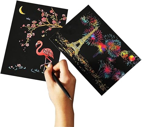 Lot De 4 Feuilles De Papier A Gratter Carte Postale Tableau A Dessin Colore Magique Tableau