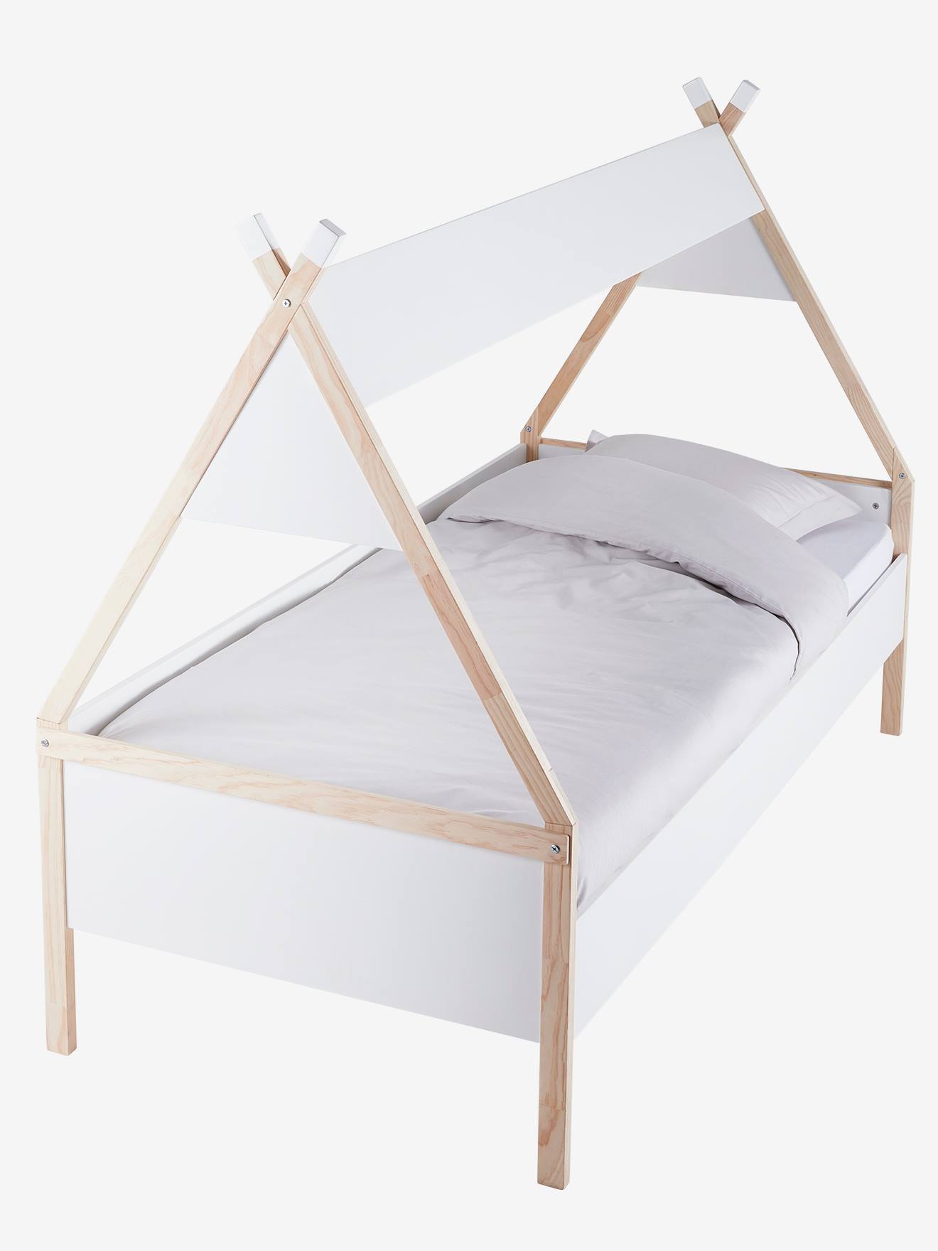 Mini Lit Tipi 70x140 Cm Tipi Coloris Blanc Et Taupe Lit Enfant But