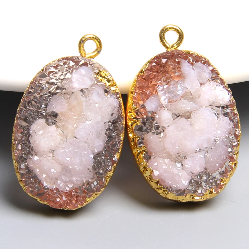 5 Pieces Rose Druzy Pendentif Pendule Pierre Quartz Cristal Pendentif Bijoux Fabrication A La Main En Gros Collier A Faire Soi Meme Bijoux Pendentifs Aliexpress
