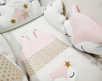 Tour De Lit Renards Et Nuages Rose Poudre Et Blanc Un Grand Marche