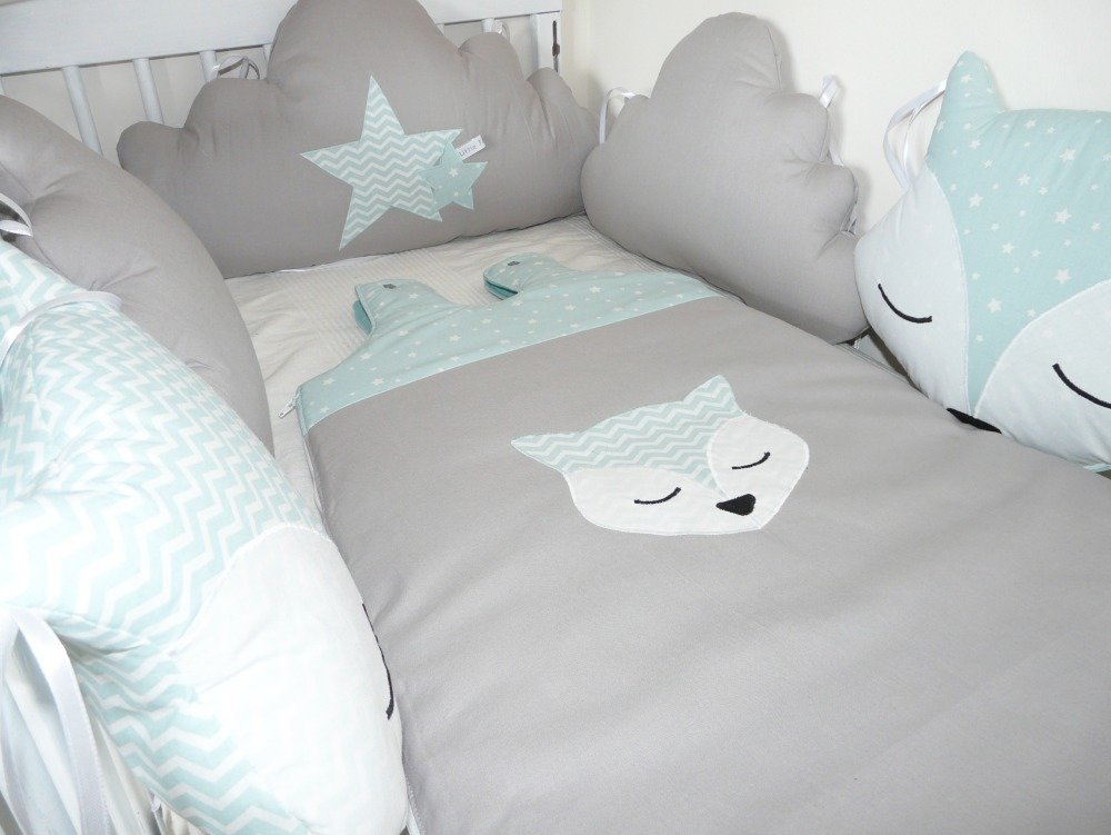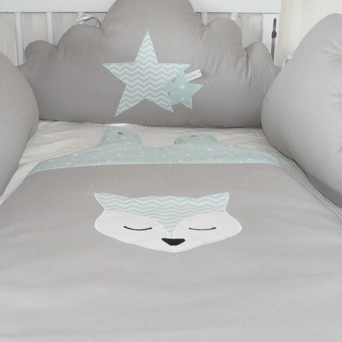 Tour De Lit Renards Et Nuages Vert Mint Et Gris Clair Un Grand Marche